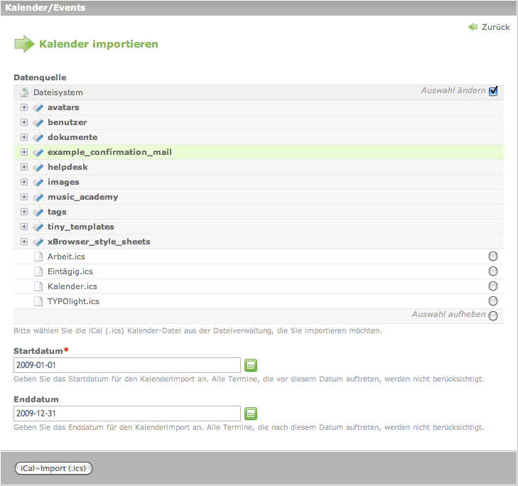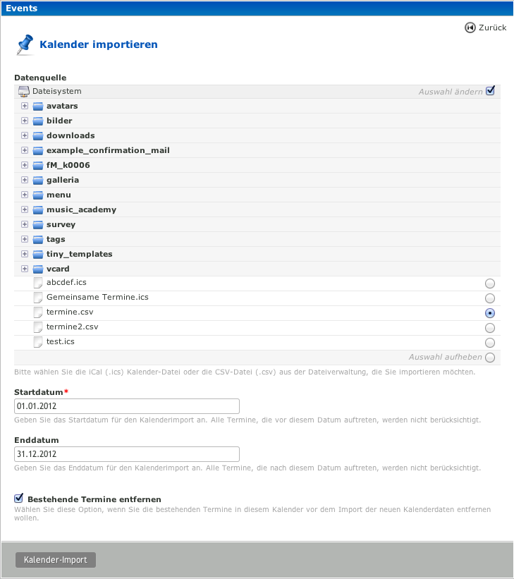 Import von Kalenderdateien in Contao-Kalender