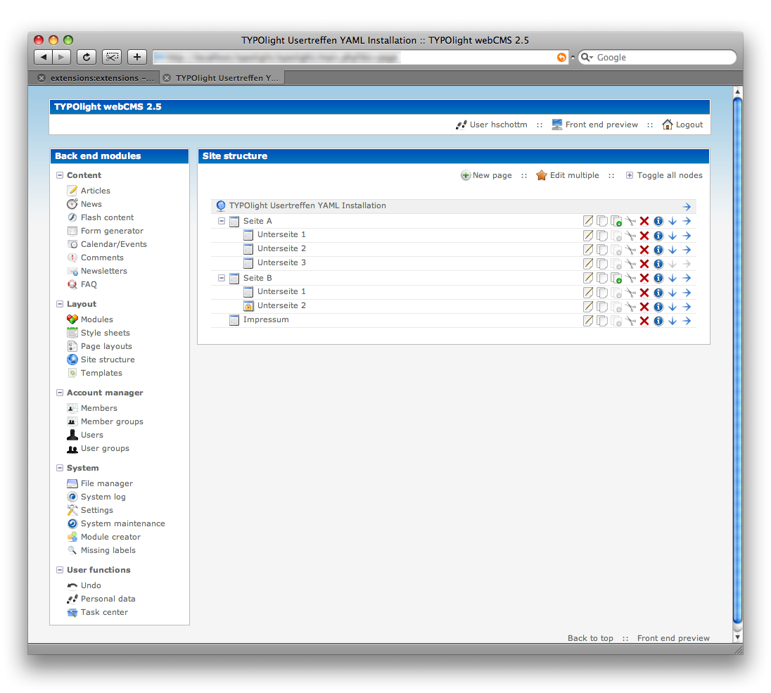 aktuell23:44, 10. Sep. 2010Vorschaubild der Version vom 10. September 2010, 23:44 Uhr1.220 × 1.085 (219 KB)Hschottm (Diskussion | Beiträge)Screenshot des TYPOlight Administrationsoberfläche mit dem Oxygen-Theme