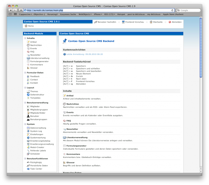 Screenshot der Contao Administrationsoberfläche mit dem Oxygen-Theme