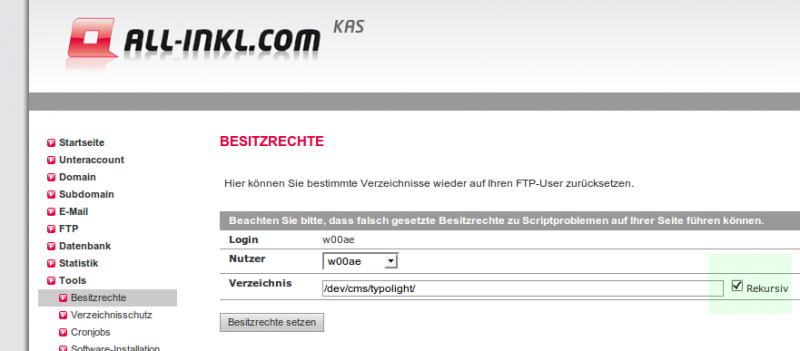 Das KAS-System unter Tools -> Besitzrechte zur Veranschaulichung einer Alternative den Safemodehack zu umgehen.