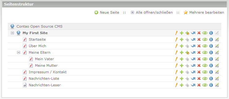 Nach dem Speichern und Schliessen sollte die Seitenstruktur wie folgt aussehen: