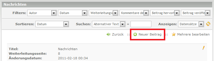 Anschliessend erstellt man eine neue Nachricht durch einen Klick auf den Button Neuer Beitrag.