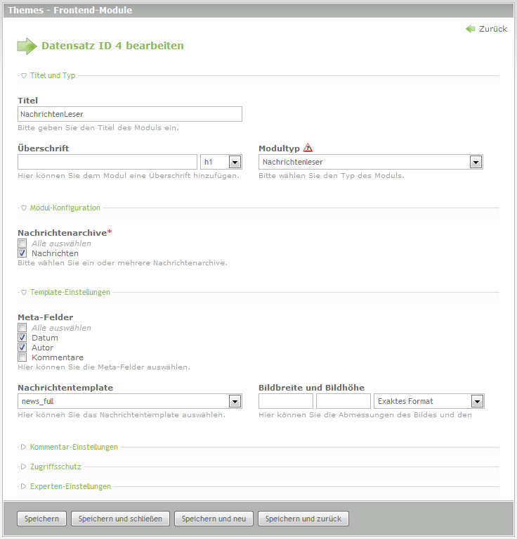 Alle benötigten Einstellungen wurden gesetzt, man kann das Modul speichern und schliessen.
