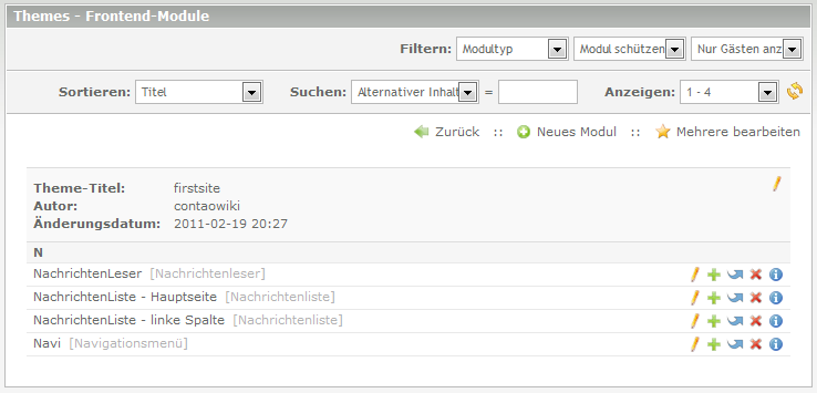 Das Modul der Liste für die Hauptseite unterscheidet sich in einigen Punkten vom zuvor angelegten Modul.