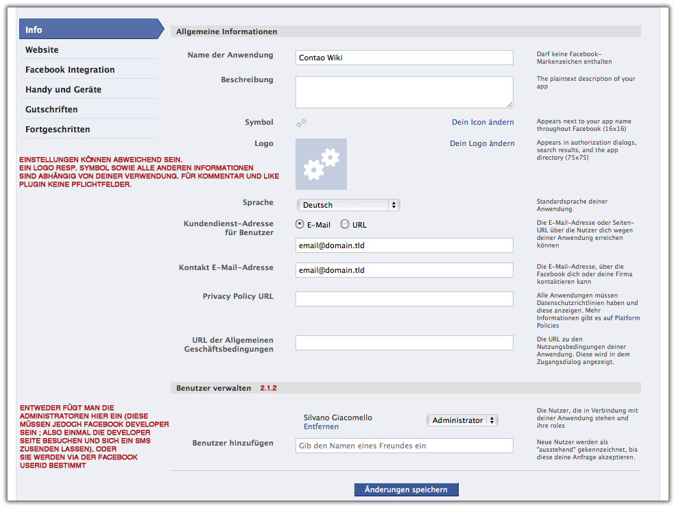 Nun hat man seine Facebook App erstellt und einige Informationen bekommen, welche man in Contao "verbauen" muss - hier eine Übersicht mit allen benötigten Informationen.