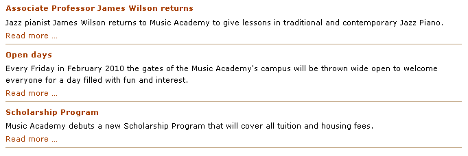 Hier wird nur der Titel der Nachricht ausgegeben. Mit diesem Template lassen sich sehr kurze Nachrichtenlisten darstellen.