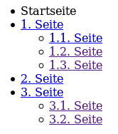 Für Einsteiger empfiehlt sich auch die Anleitung Die erste Webseite. Es wurde ein neuer Startpunkt der Seite definiert und folgende Seitenstruktur erstellt.