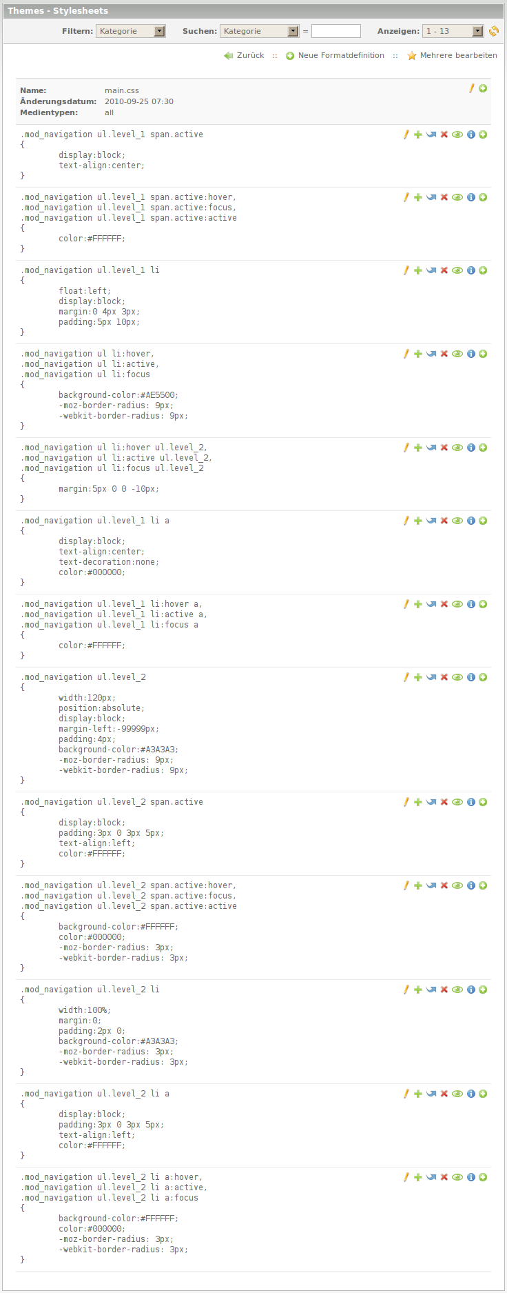 Jetzt muss die CSS bearbeitet werden, in welche folgende Definitionen eingefügt werden: